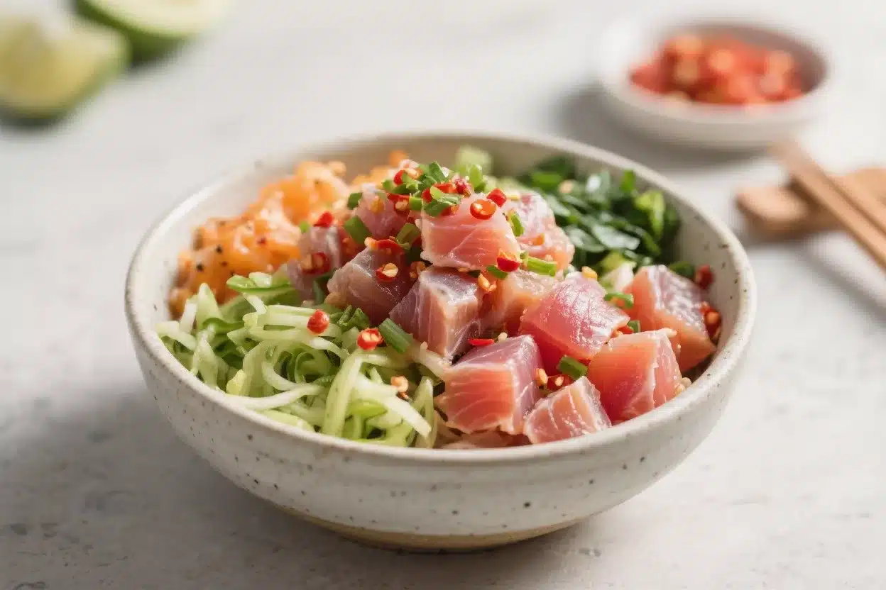 Using sashimi-grade tuna keeps the flavors clean and the texture silky. Crunchy toppings like cucumber and radish add bite, while avocado brings healthy fats that make it satisfying. Everything is balanced, bright, and keto-friendly.
